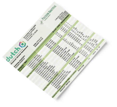 The DUTCH Complete Test is an all-inclusive assessment of your hormones and their metabolites. This test measures adrenal and sex hormones, including cortisol, estrogen, progesterone, and testosterone. The urine test provides a comprehensive picture of your hormonal health, helping to identify imbalances and guide effective treatment plans.